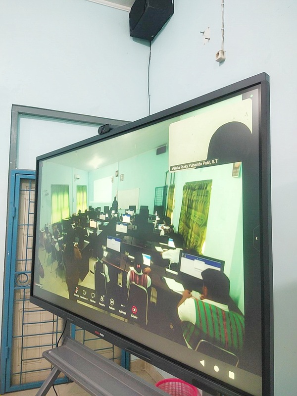 Salah satu hal yang menjadi sorotan utama dalam pelaksanaan TKA kali ini adalah sistem pengawasannya yang terintegrasi secara digital. Ujian ini diawasi secara langsung oleh pihak Kementerian Pendidikan melalui telekonferensi Zoom. Dari dokumentasi yang ada, tampak layar interaktif besar (smartboard) di depan kelas yang menampilkan ruang pertemuan Zoom, memastikan pusat dapat memantau kedisiplinan dan kelancaran ujian secara real-time.
