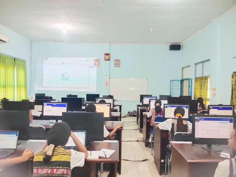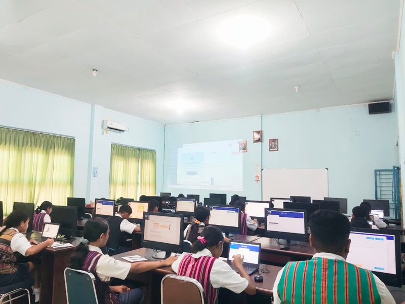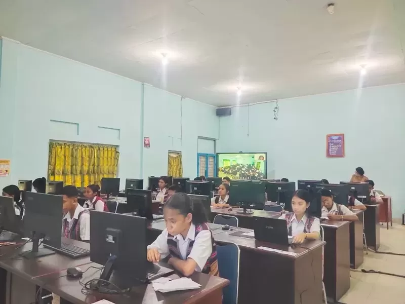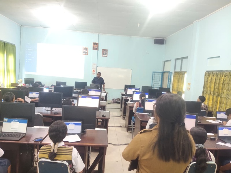 Suasana tertib di dalam ruang komputer SMPK St. Pius X Lewoleba selama pelaksanaan TKA.
